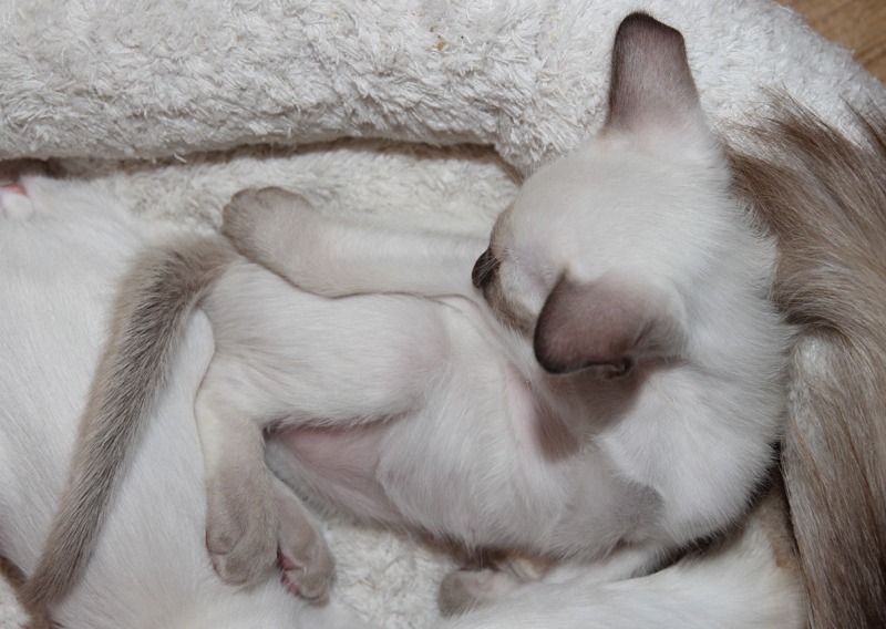 Nuppu and her very first litter. 4 siamese variant kittens altogether. (30.03.2013)