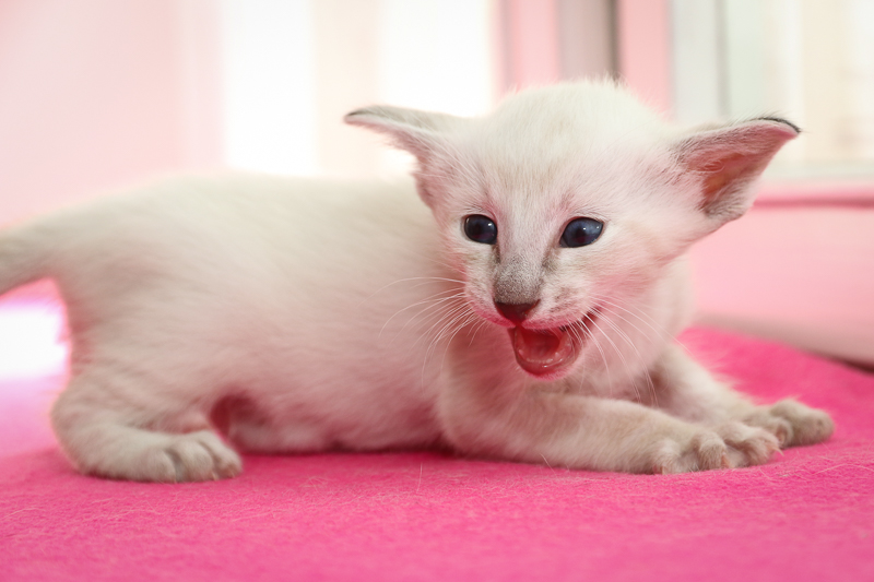 Violet, older kitten from the B2-litter is playing with the younger kittens.